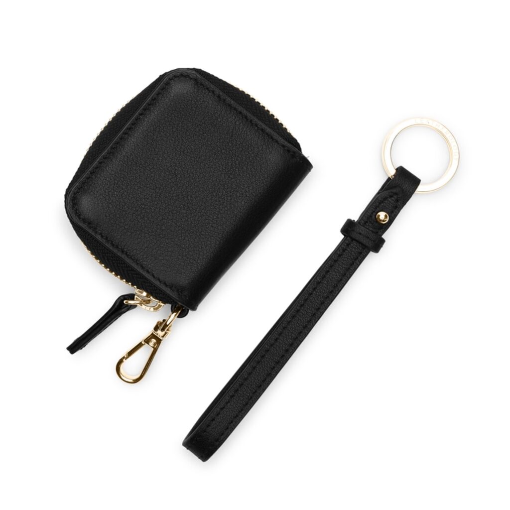 A stylish leather wristlet that keeps AirPods secure and accessible, blending practicality with modern design.