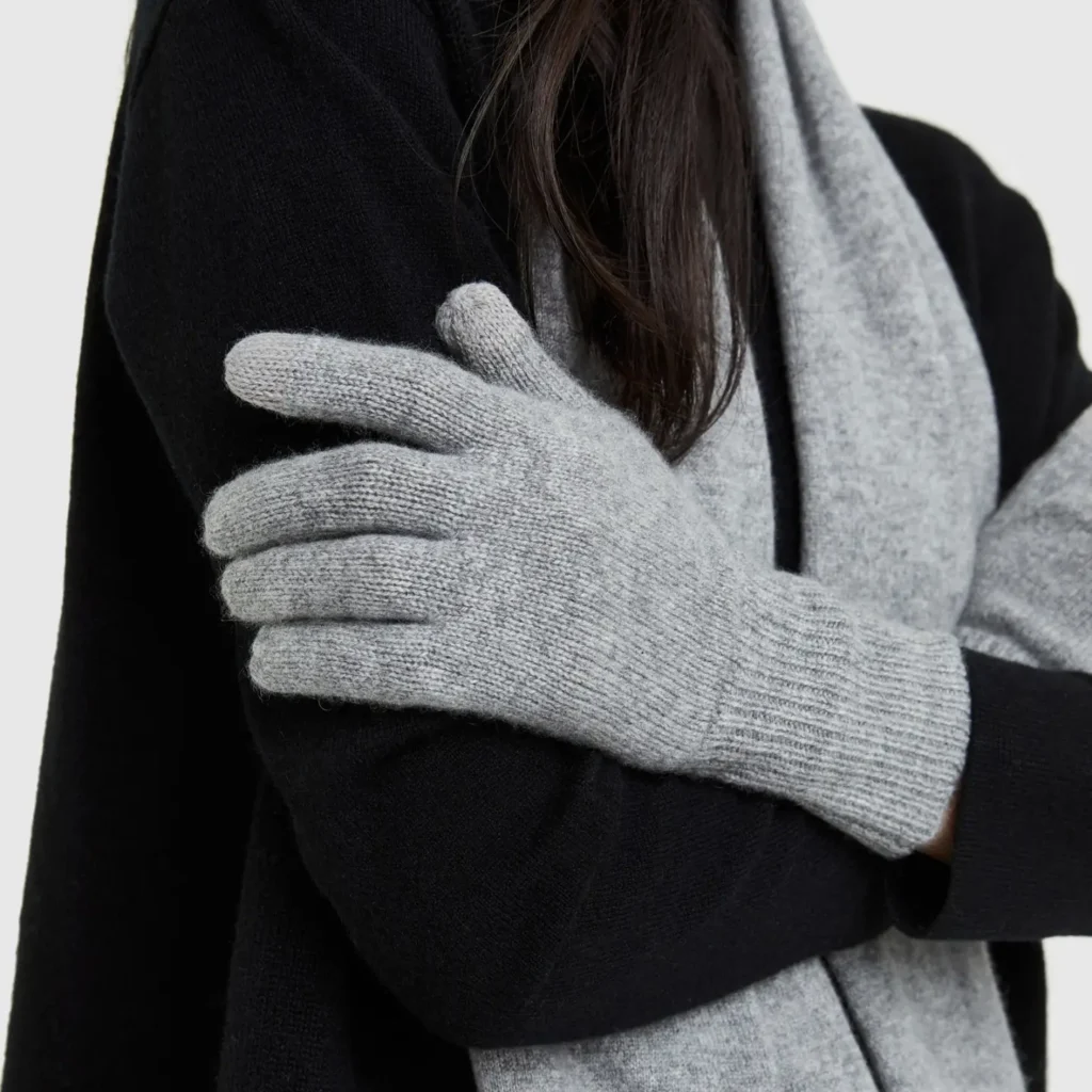 Soft, timeless cashmere gloves offering luxurious warmth and comfort in cold weather.